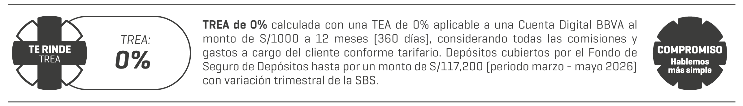 Para mayor información estamos a tu disposición en nuestra Banca por Teléfono al (01) 595-0000 o puedes ingresar a nuestra página web. Las tasas y tarifas de todos nuestros productos se encuentran publicadas en las oficinas del banco y en bbva.pe.