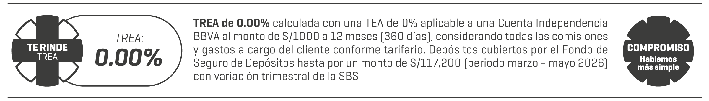 Para mayor información estamos a tu disposición en nuestra Banca por Teléfono al (01) 595-0000 o puedes ingresar a nuestra página web. Las tasas y tarifas de todos nuestros productos se encuentran publicadas en las oficinas del banco y en bbva.pe.