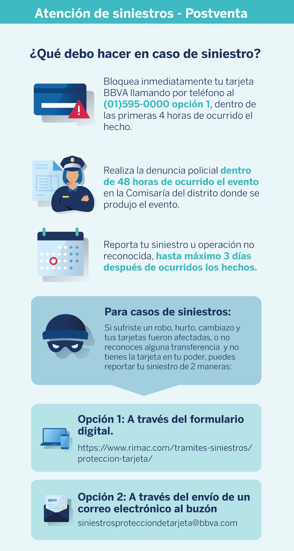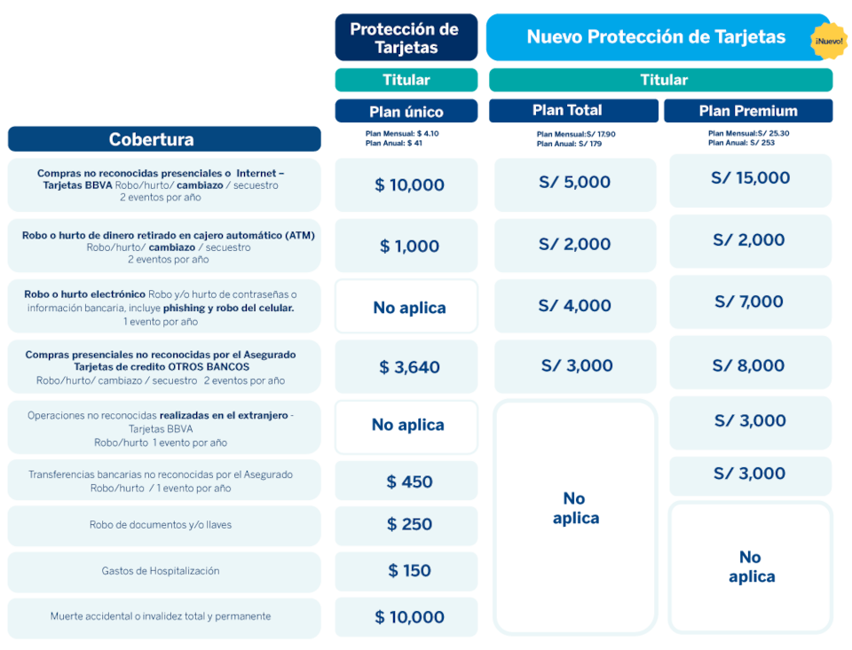 ¿De qué se trata el seguro de protección de tarjetas de BBVA?Seguro Protección de Tarjetas te brinda la seguridad de proteger tu tarjeta de débito o crédito del BBVA, o tarjetas de crédito de otros bancos, ante el uso indebido de ellas: falsificación de identidad, uso forzado, hurto de retiros en cajeros automáticos y compras fraudulentas en internet.