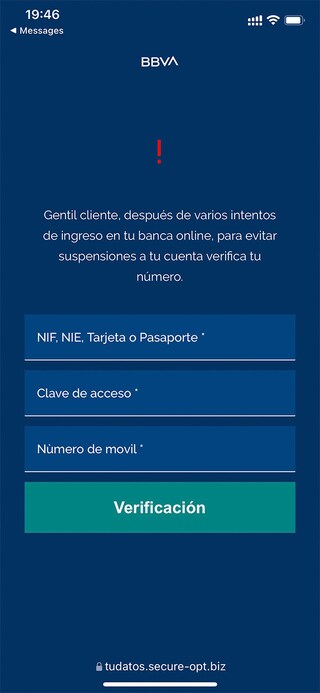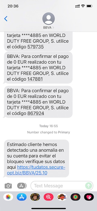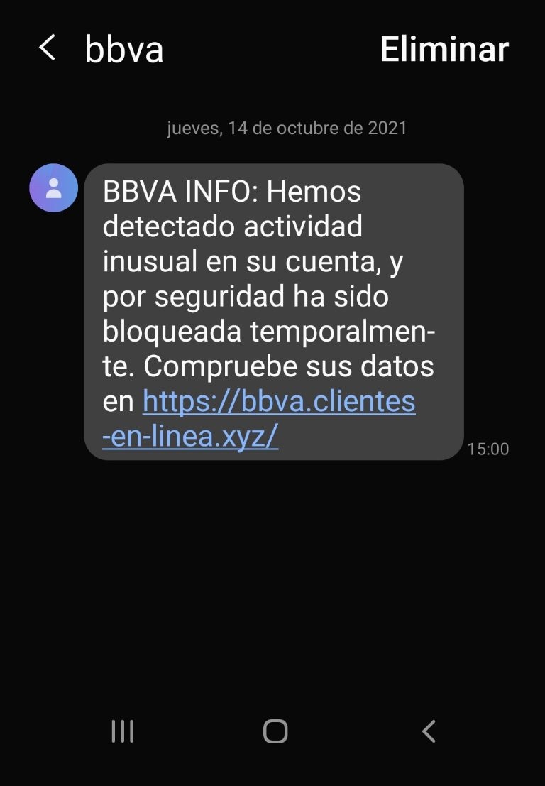 En mayo de este año, surgió una campaña de smishing, un tipo de phishing que llegaba por SMS, intentando suplantar a BBVA.