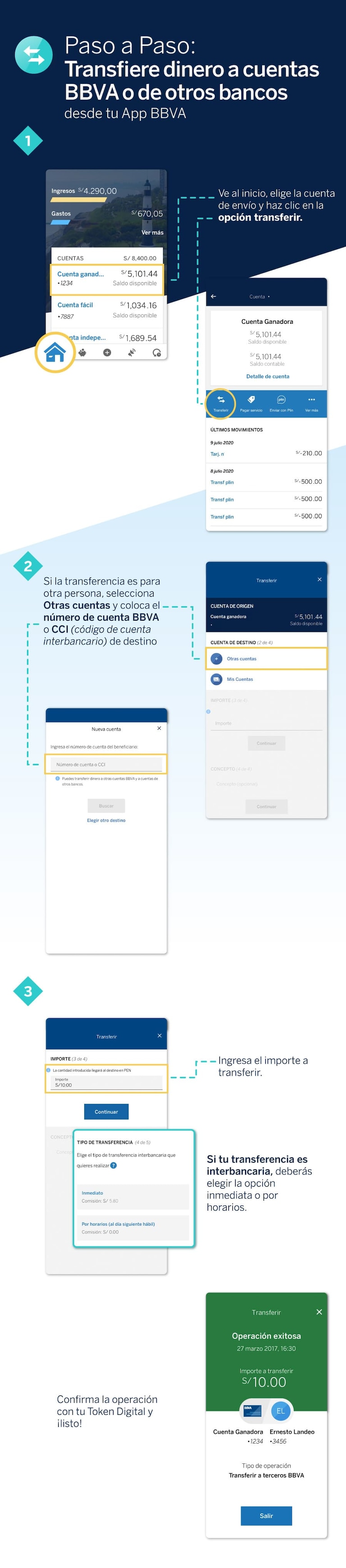 Haz Transferencias a cuentas de ahorro BBVA o de otros bancos desde tu App BBVA