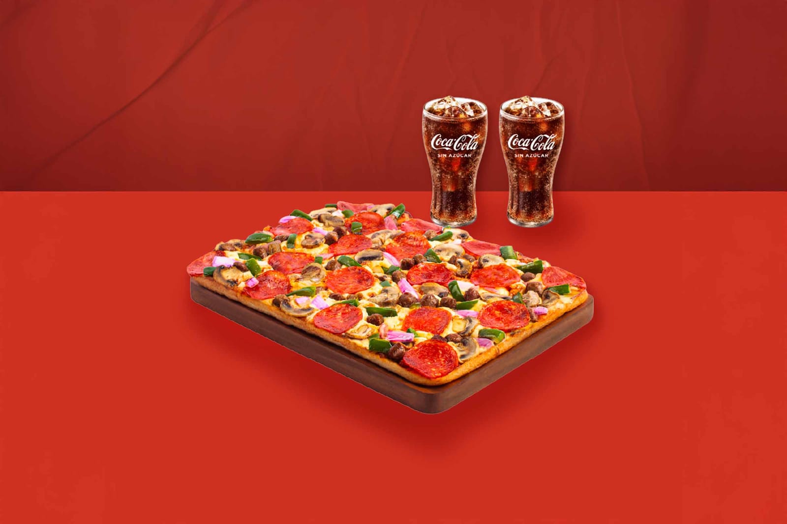 Pizza Hut (01 pizza rectangular + 02 gaseosas regular de 12 oz a solo S/19.90)